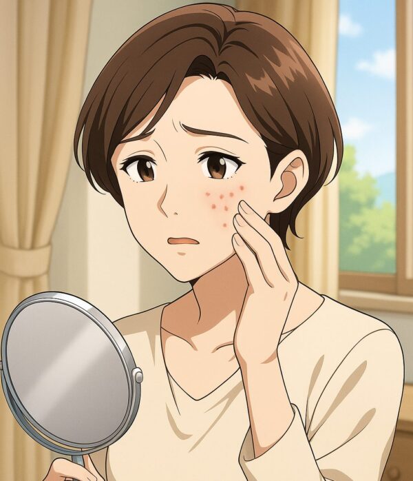 具体的には、顔に赤みが出たり、小さなぶつぶつができたり、かゆみを感じたりといった症状が現れることがあります。
